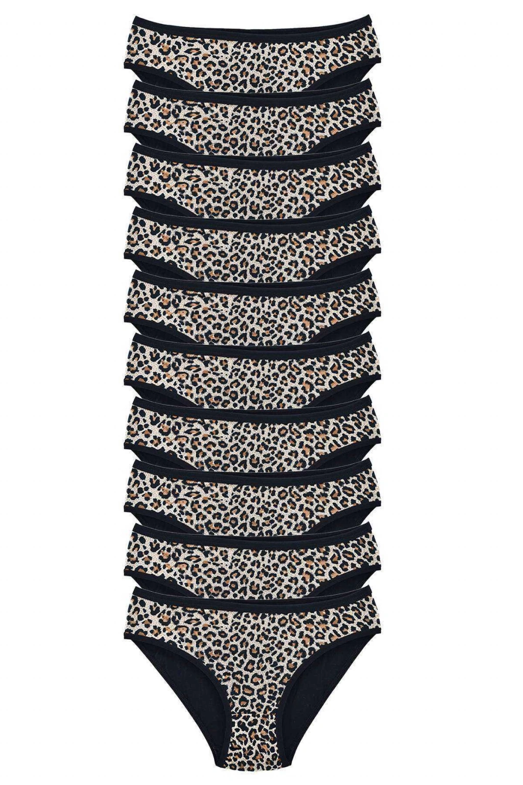 10 Adet Leopar Desenli Likralı Yumuşak Dokulu Kadın Slip Külot