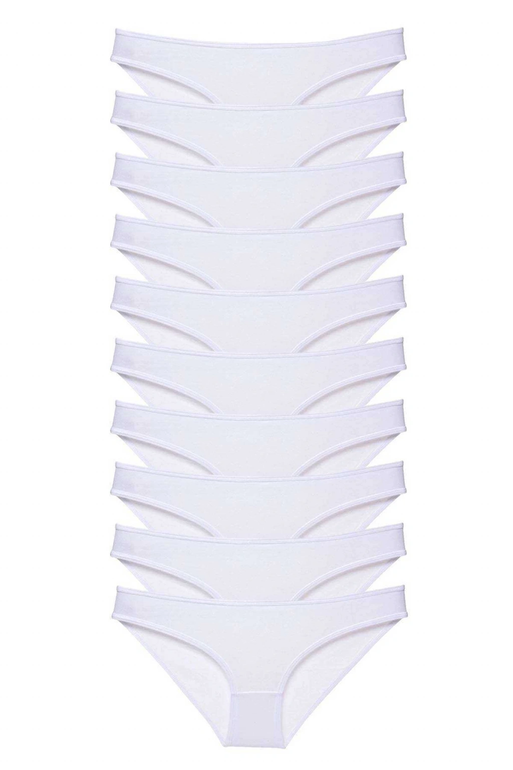 10 Adet Süper Eko Set Likralı Kadın Slip Külot Beyaz