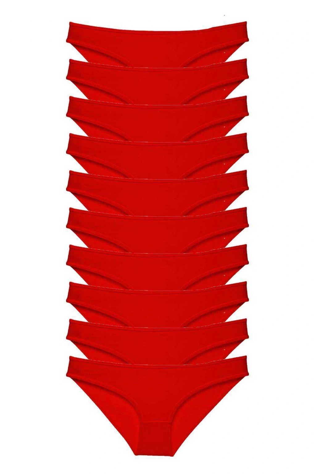 10 Adet Süper Eko Set Likralı Kadın Slip Külot Kırmızı