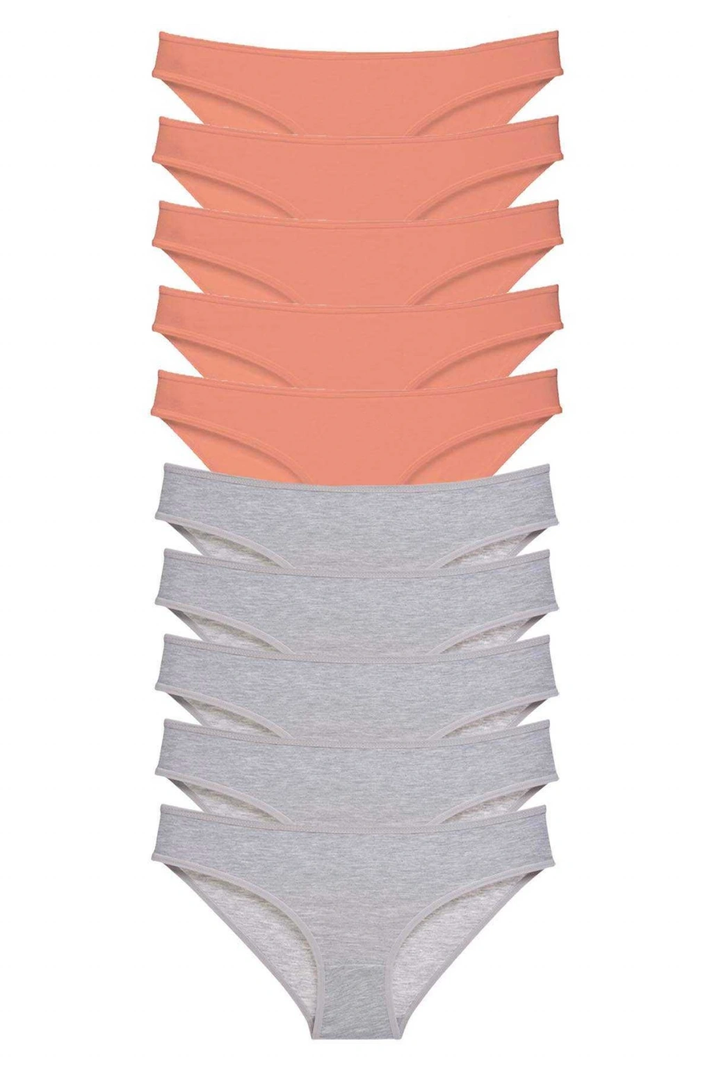 10 Adet Süper Eko Set Likralı Kadın Slip Külot Pudra Gri