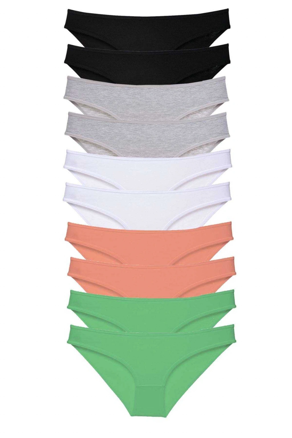 10 Adet Süper Eko Set Likralı Kadın Slip Külot Siyah Gri Beyaz Pudra Yeşil