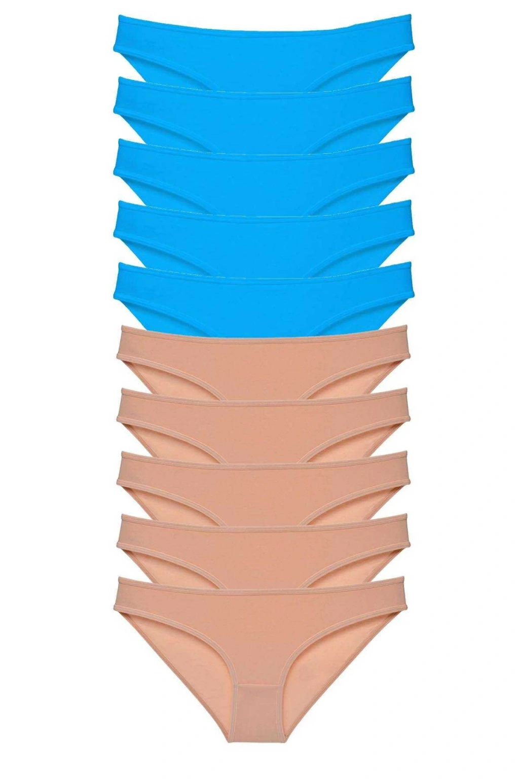 10 Adet Süper Eko Set Likralı Kadın Slip Külot Ten Mavi