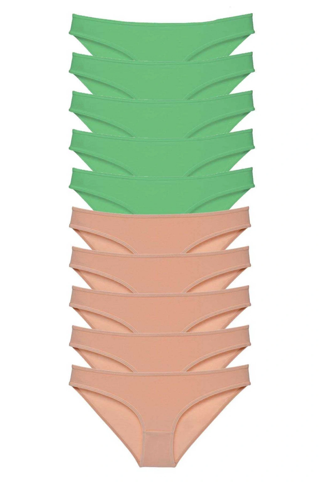 10 Adet Süper Eko Set Likralı Kadın Slip Külot Yeşil Ten