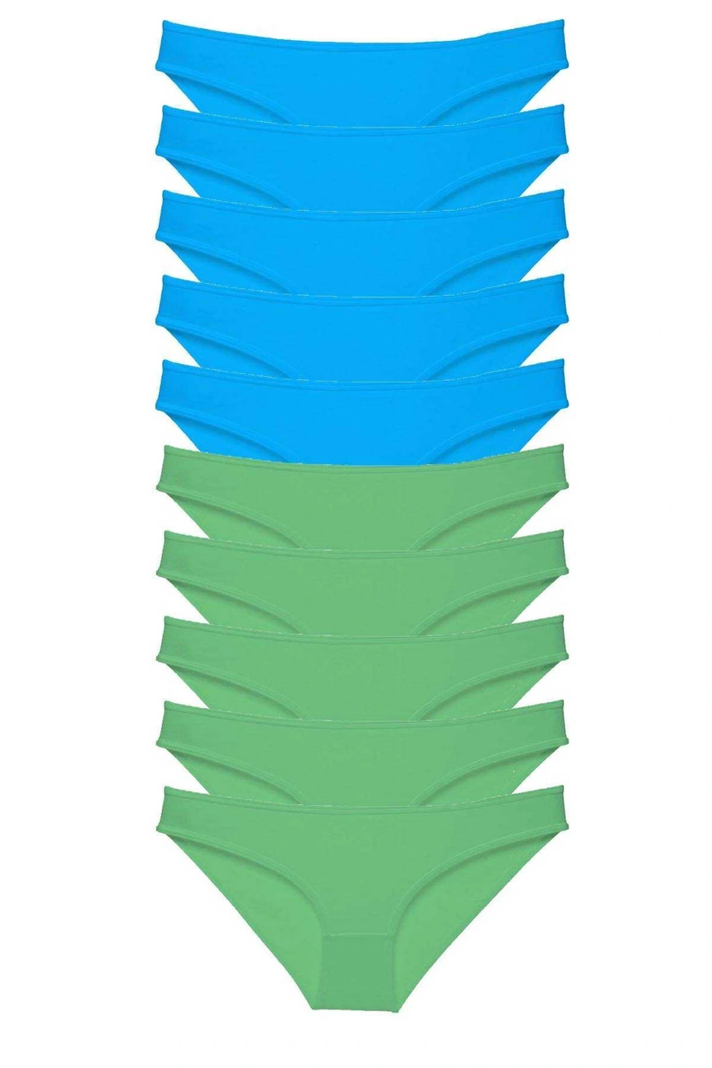 10 Adet Süper Eko Set Likralı Kadın Slip Yeşil Mavi