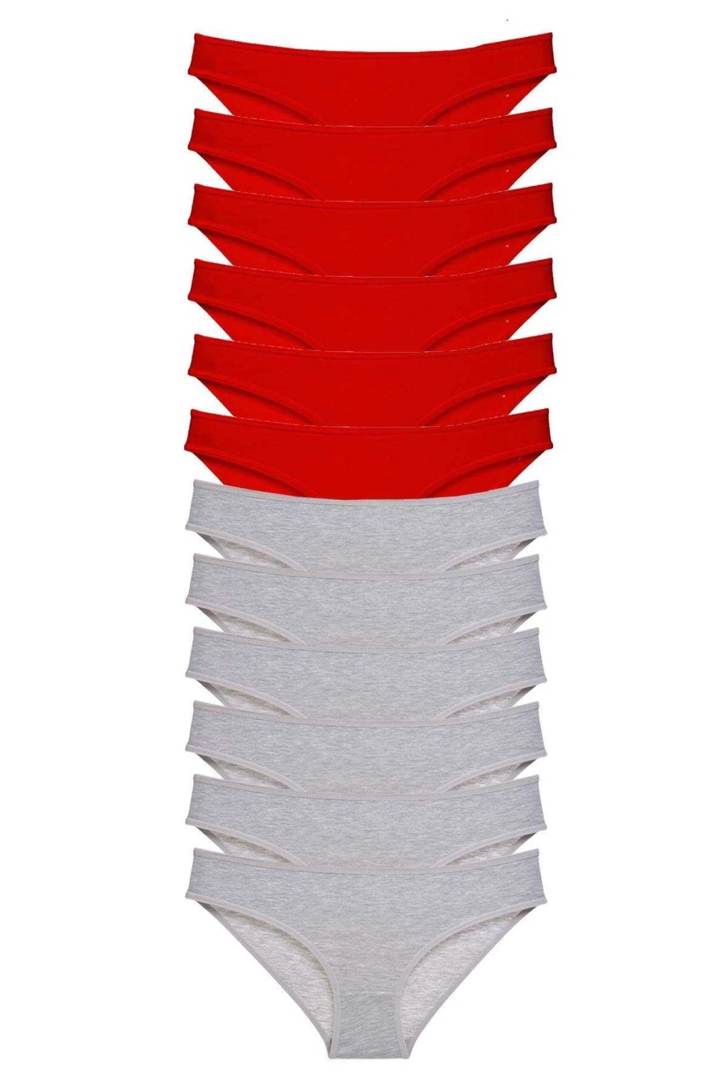 12 Adet Eko Set Likralı Kadın Slip Külot Kırmızı Gri