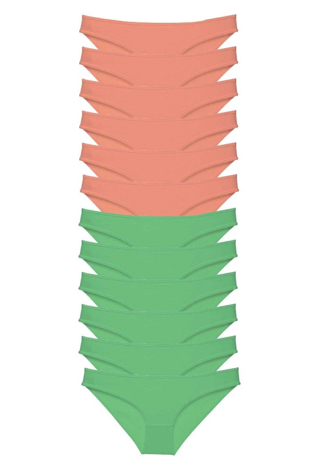 12 Adet Eko Set Likralı Kadın Slip Külot Pudra Yeşil
