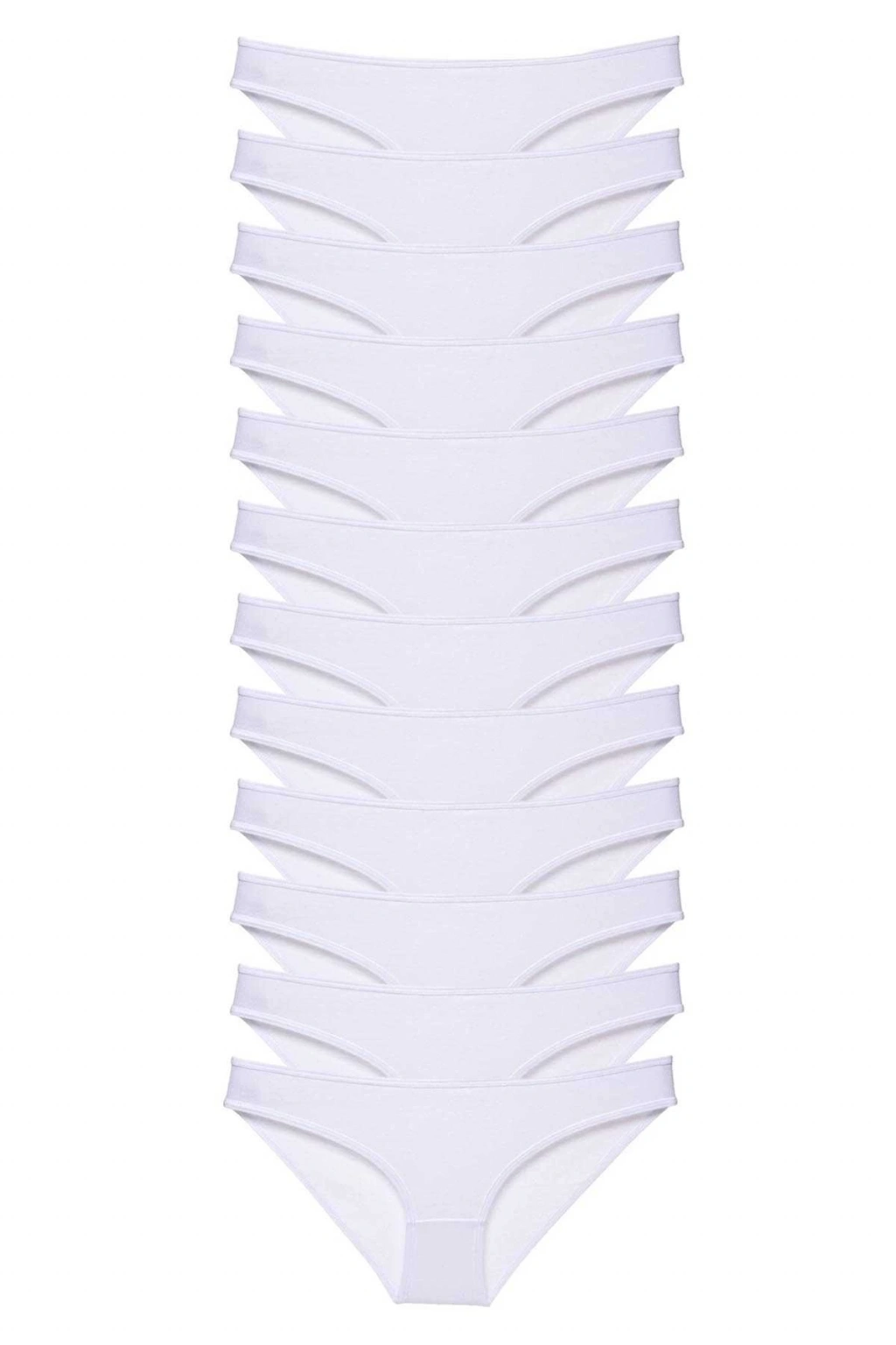 12 Adet Süper Eko Set Likralı Kadın Slip Külot Beyaz