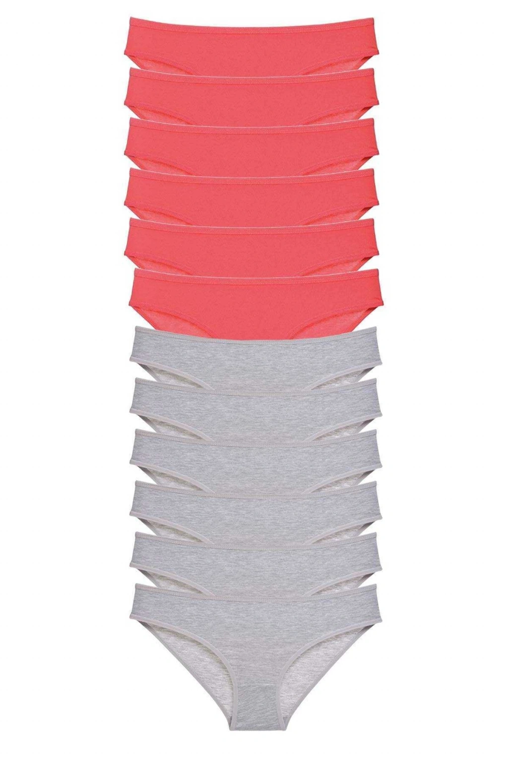 12 Adet Süper Eko Set Likralı Kadın Slip Külot Fuşya Gri