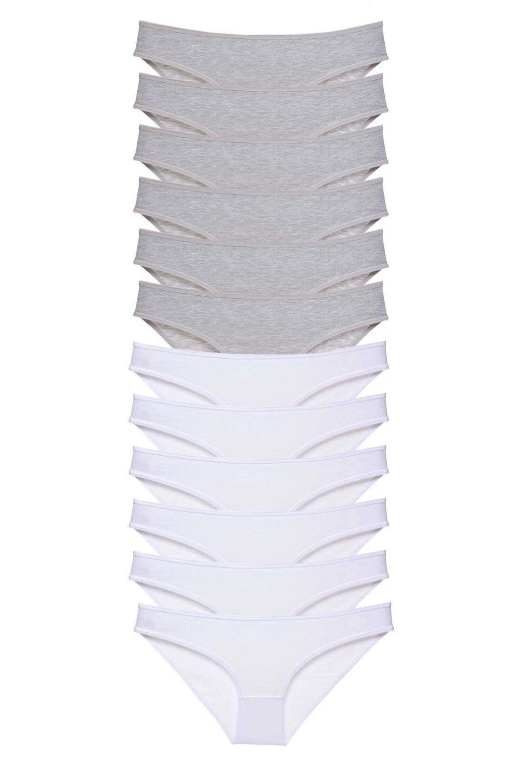 12 Adet Süper Eko Set Likralı Kadın Slip Külot Gri Beyaz