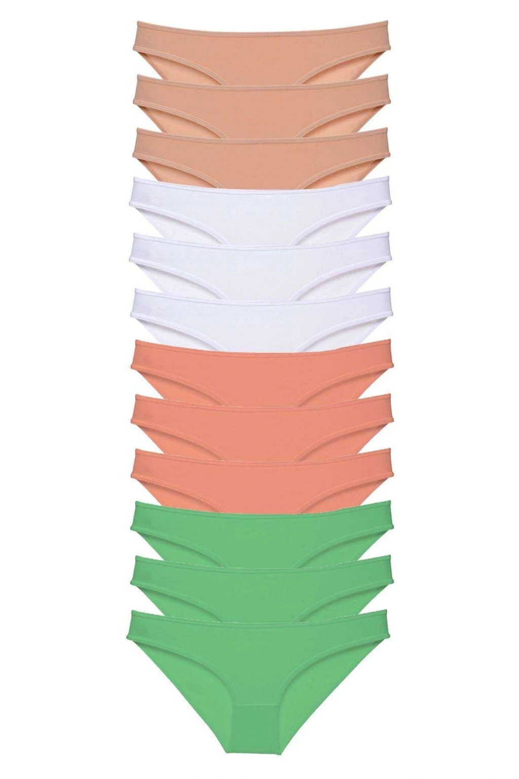 12 Adet Süper Eko Set Likralı Kadın Slip Külot Gri Beyaz Pudra Yeşil