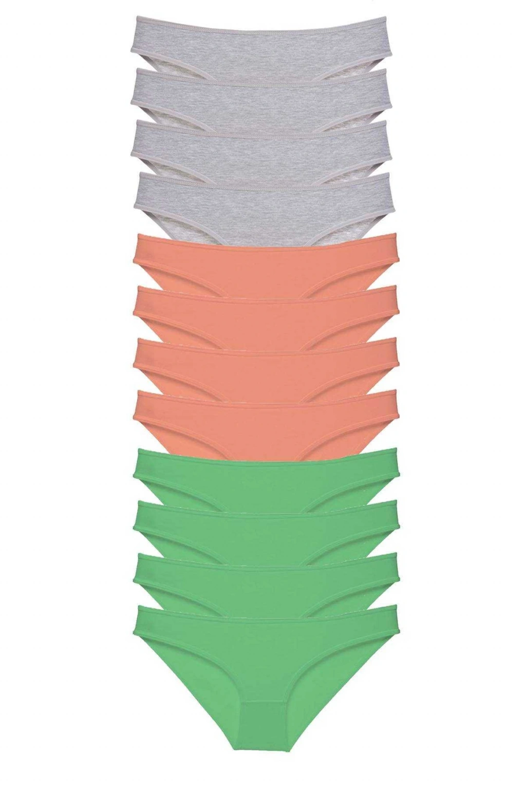 12 Adet Süper Eko Set Likralı Kadın Slip Külot Gri Pudra Yeşil