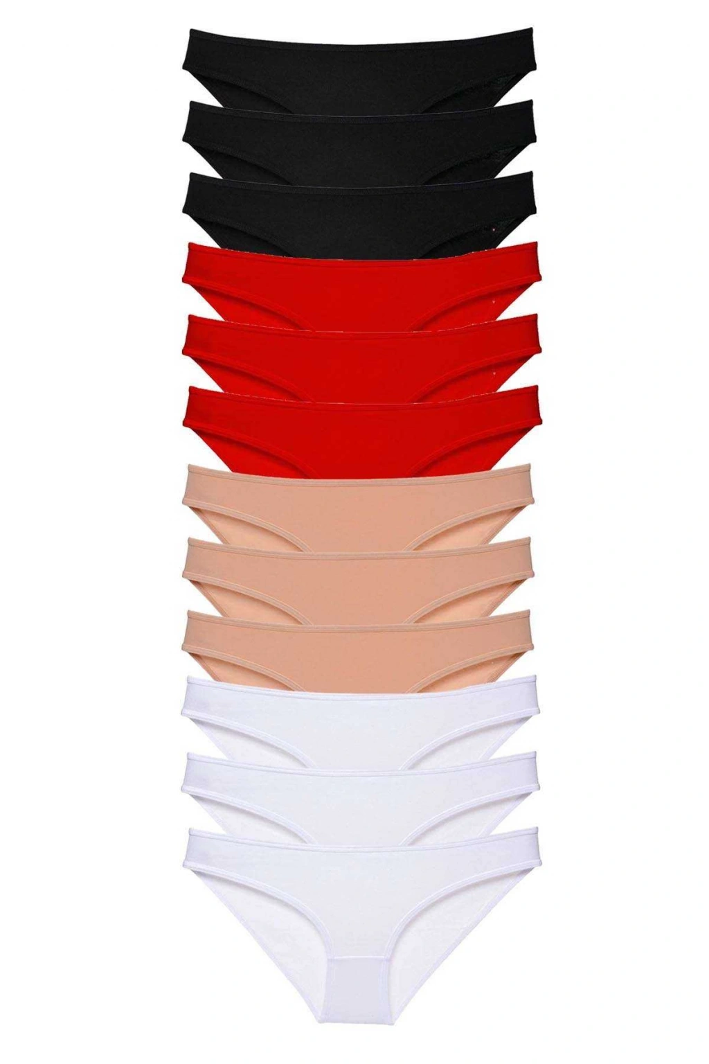12 Adet Süper Eko Set Likralı Kadın Slip Külot Siyah Kırmızı Ten Beyaz
