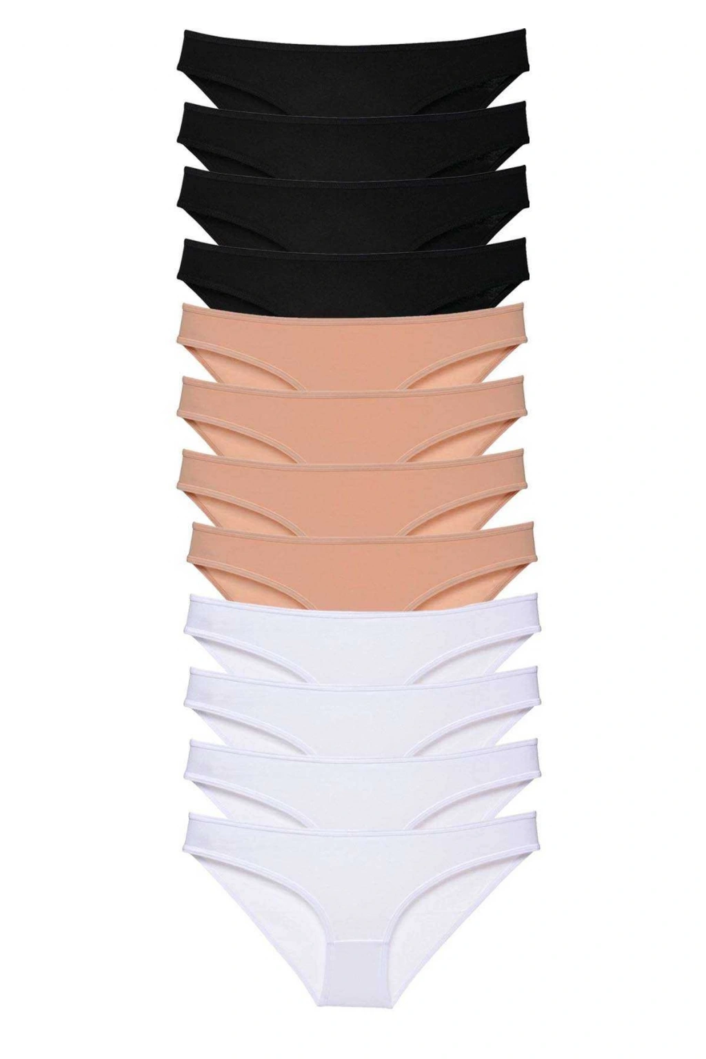 12 Adet Süper Eko Set Likralı Kadın Slip Külot Siyah Ten Beyaz