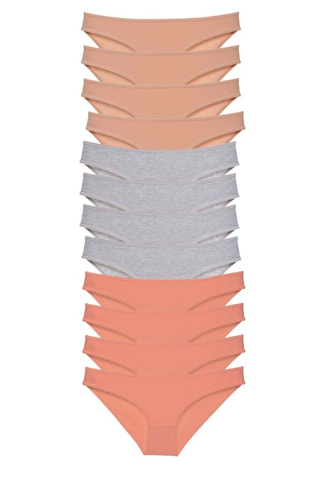 12 Adet Süper Eko Set Likralı Kadın Slip Külot Ten Gri Pudra