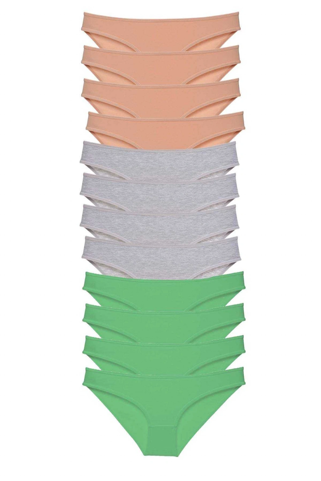 12 Adet Süper Eko Set Likralı Kadın Slip Külot Ten Gri Yeşil