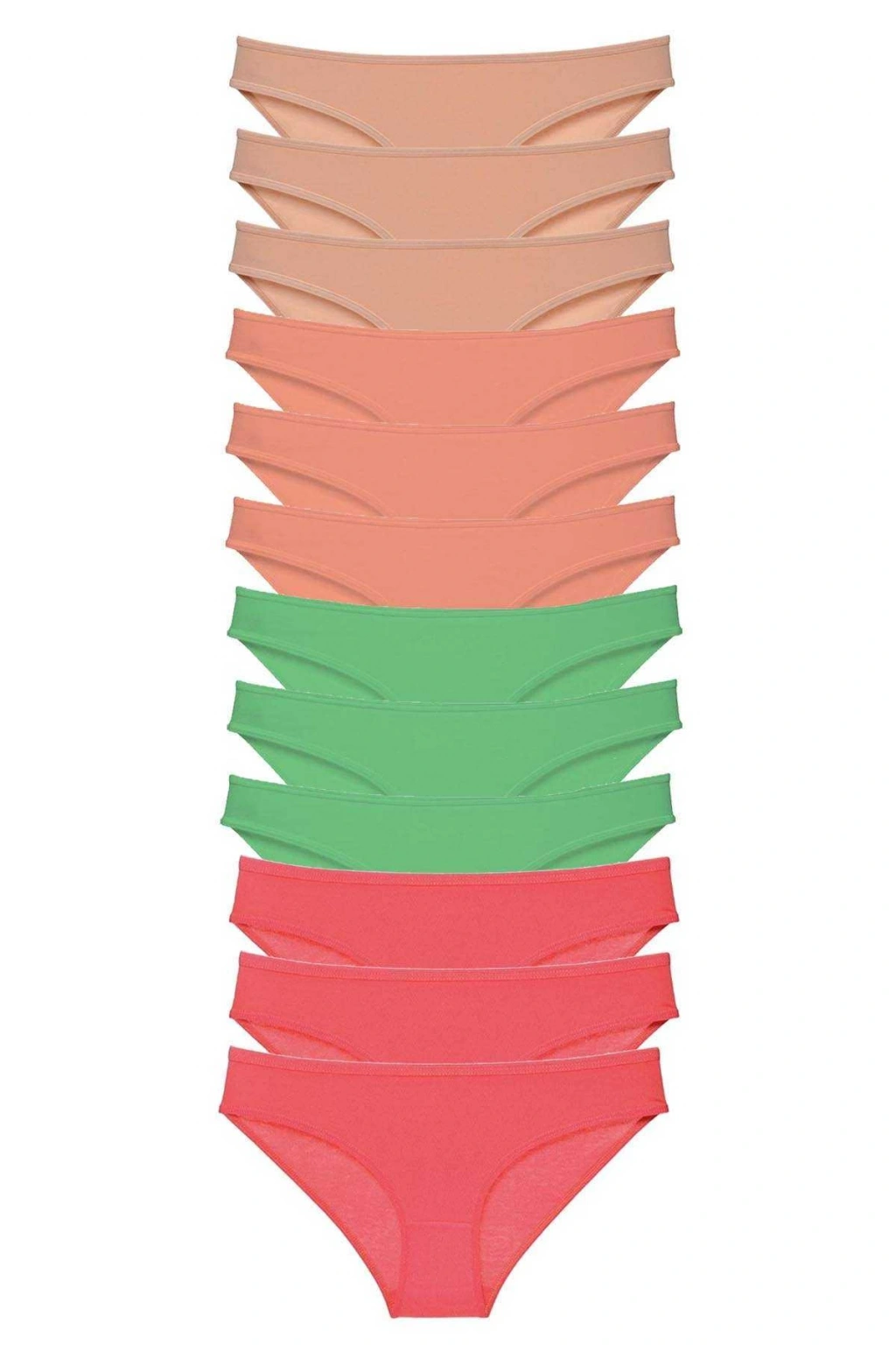 12 Adet Süper Eko Set Likralı Kadın Slip Külot Ten Pudra Yeşil Fuşya