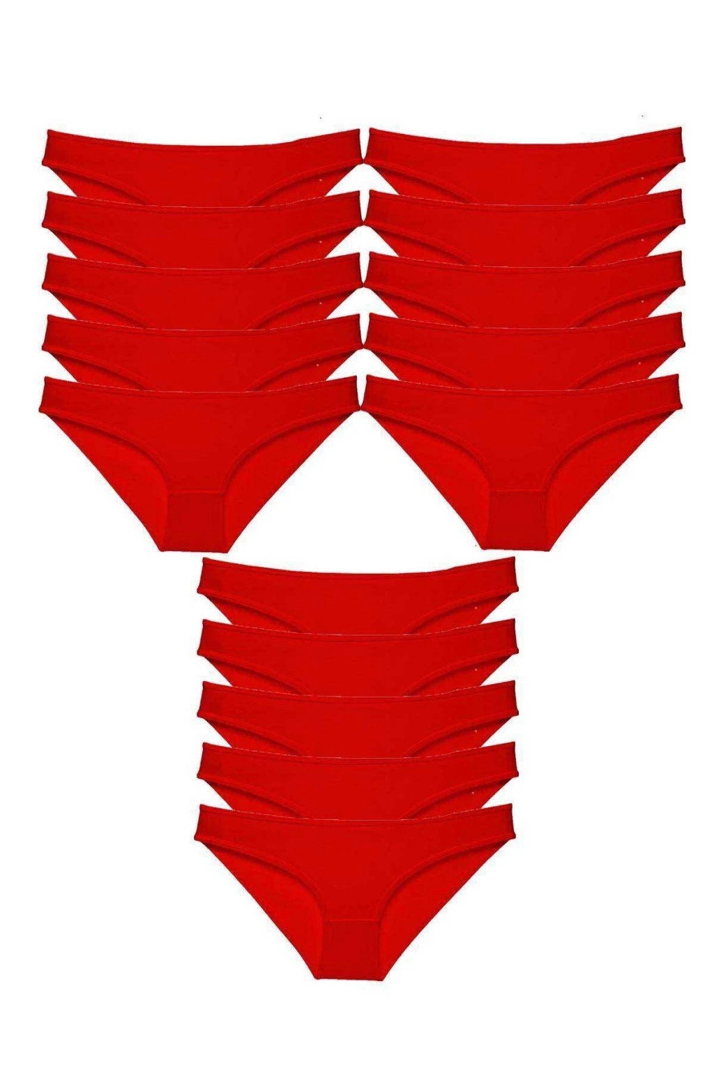 15 Adet Süper Eko Set Likralı Kadın Slip Külot Kırmızı
