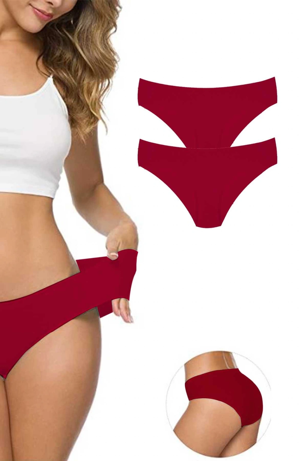 2 Adet Kadın Dikişsiz Lazer Kesim Esnek İz yapmayan Külot Bordo