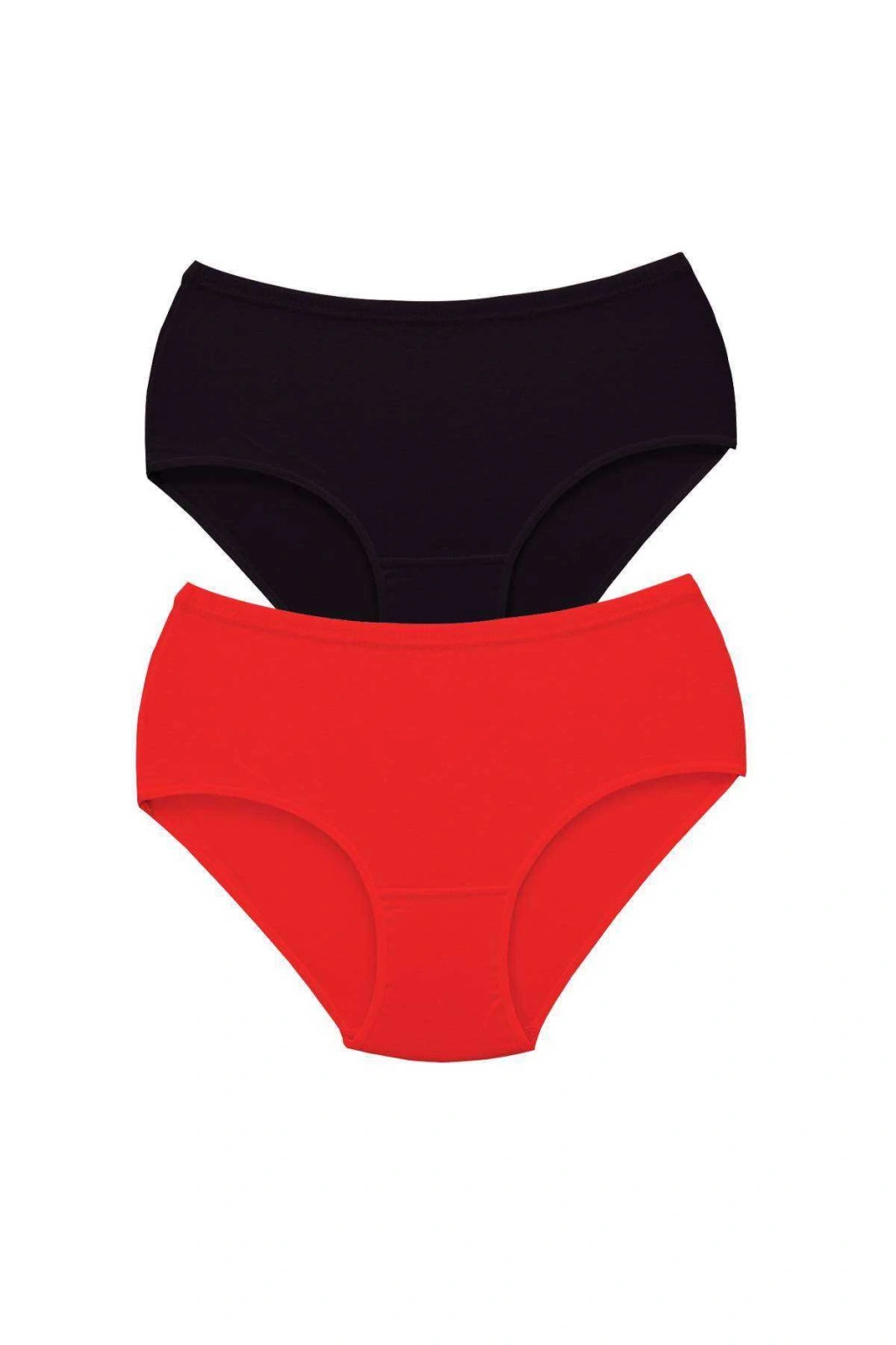2 Adet Tutku Kadın Yüksek Bel Bato Kalın Lastik Külot Siyah Kırmızı