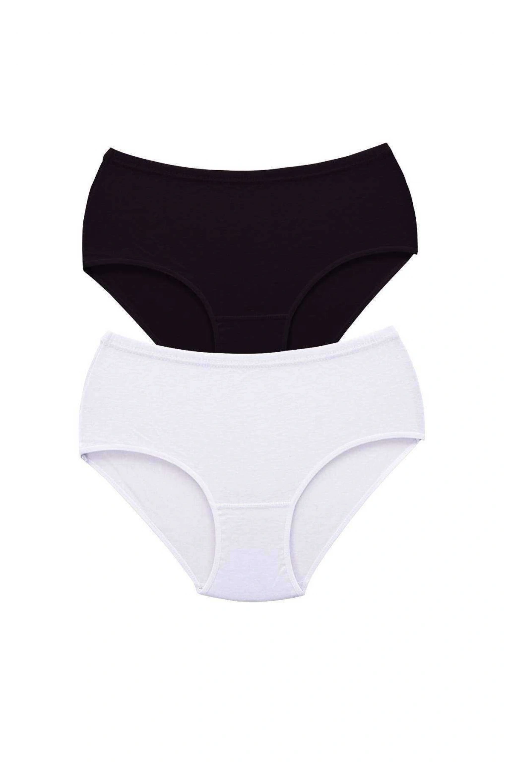 2 Adet Tutku Kadın Yüksek Bel Bato Kalın Lastik Külot Siyah Beyaz