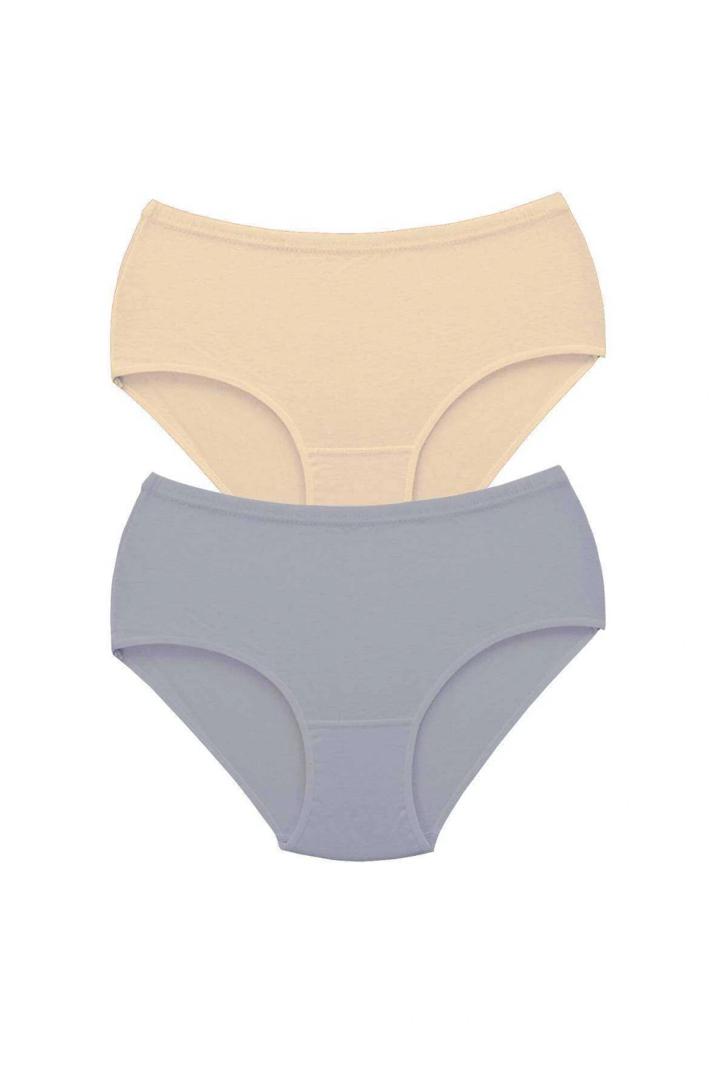2 Adet Tutku Kadın Yüksek Bel Bato Kalın Lastik Külot Ten Gri