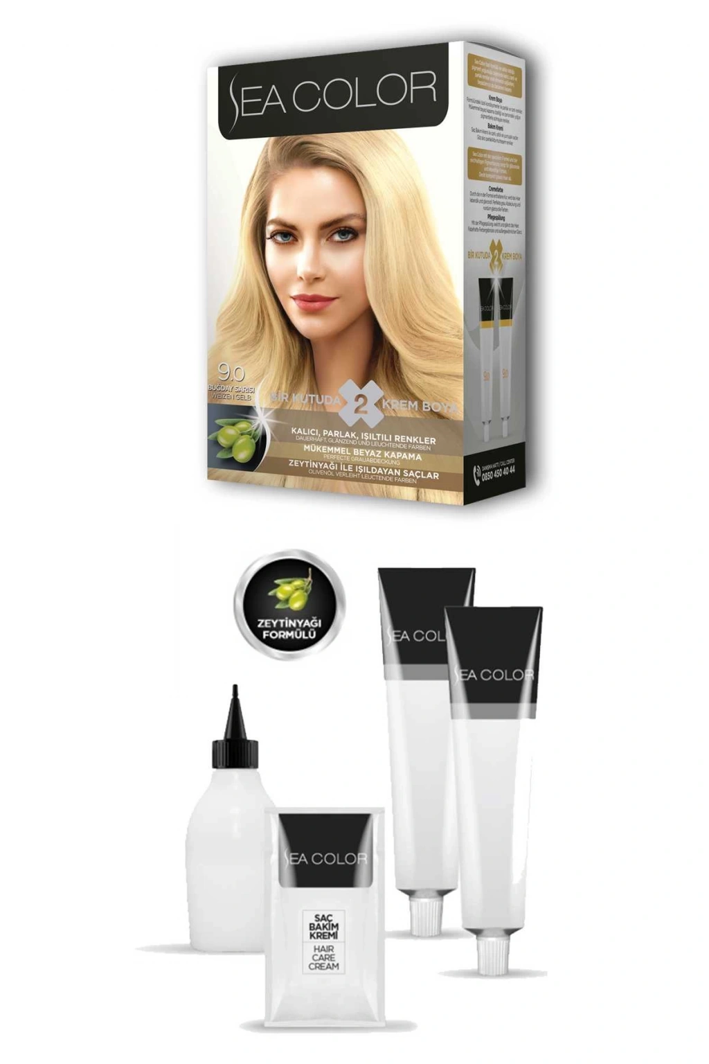 Sea Color 2X2 tüp Krem Saç Boyası Seti Buğday Sarısı No:9.0