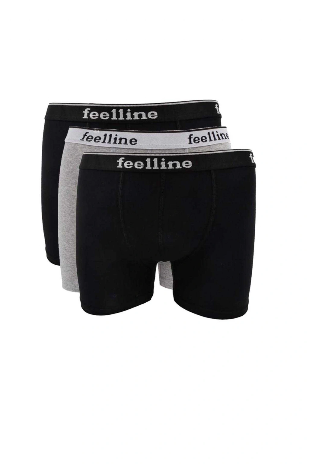 3 Adet Feelline Siyah Ve Gri Pamuklu Doğal Likralı Erkek Boxer