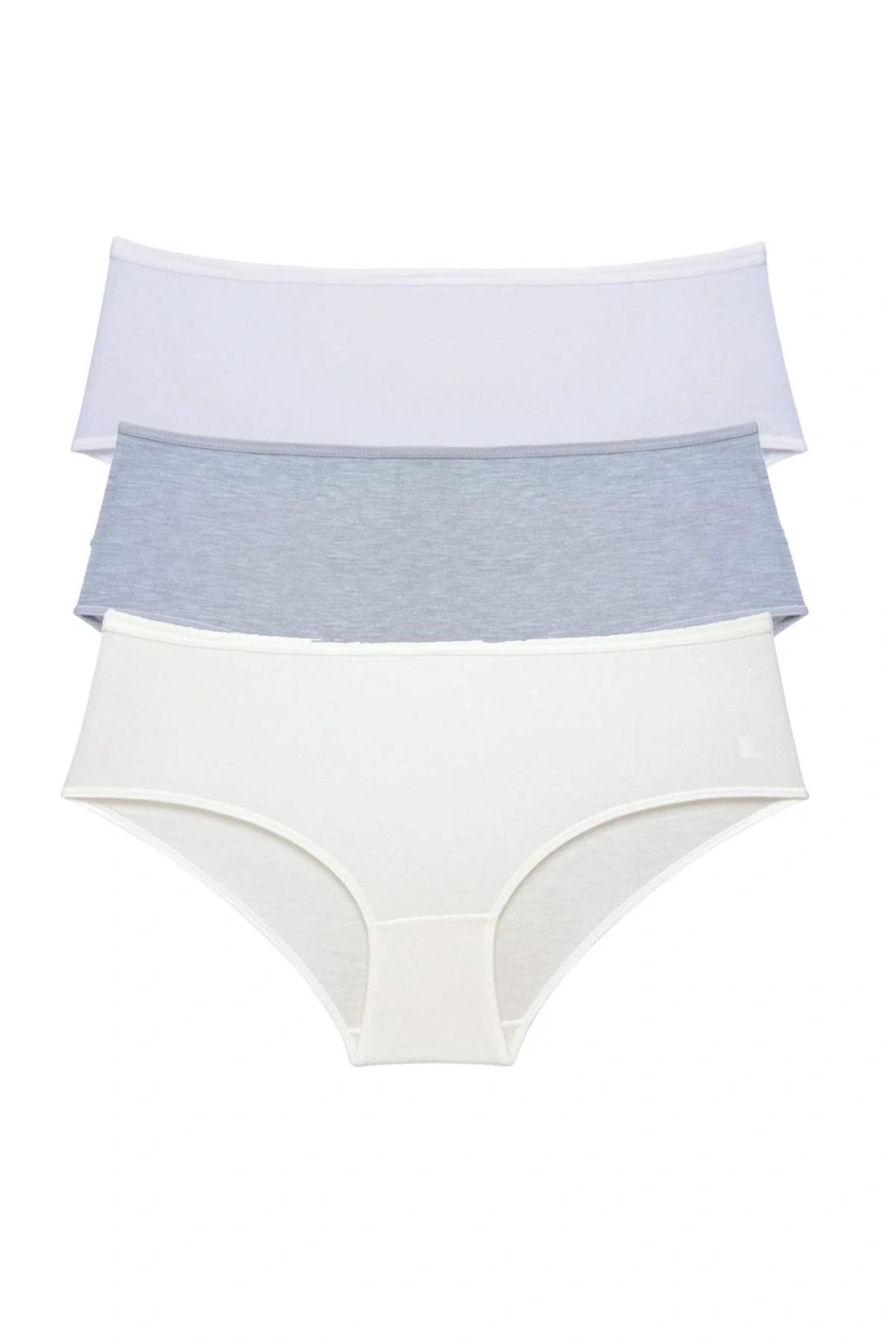 Paket içeriği: 3 Adet Kadın Yüksek Bel Bato Külot Beyaz Gri Krem