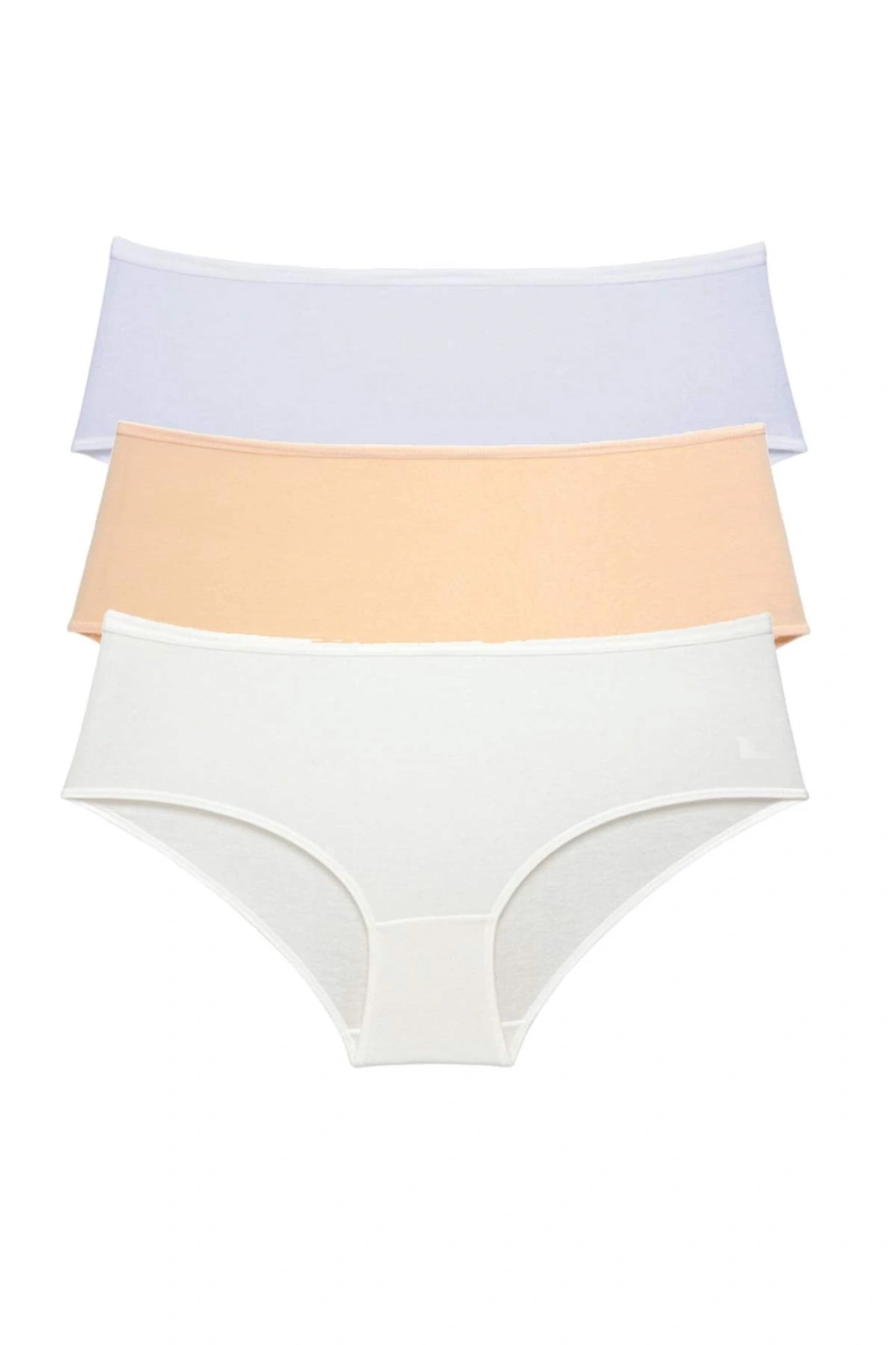 3 Adet Kadın Yüksek Bel Bato Külot Beyaz Ten Krem