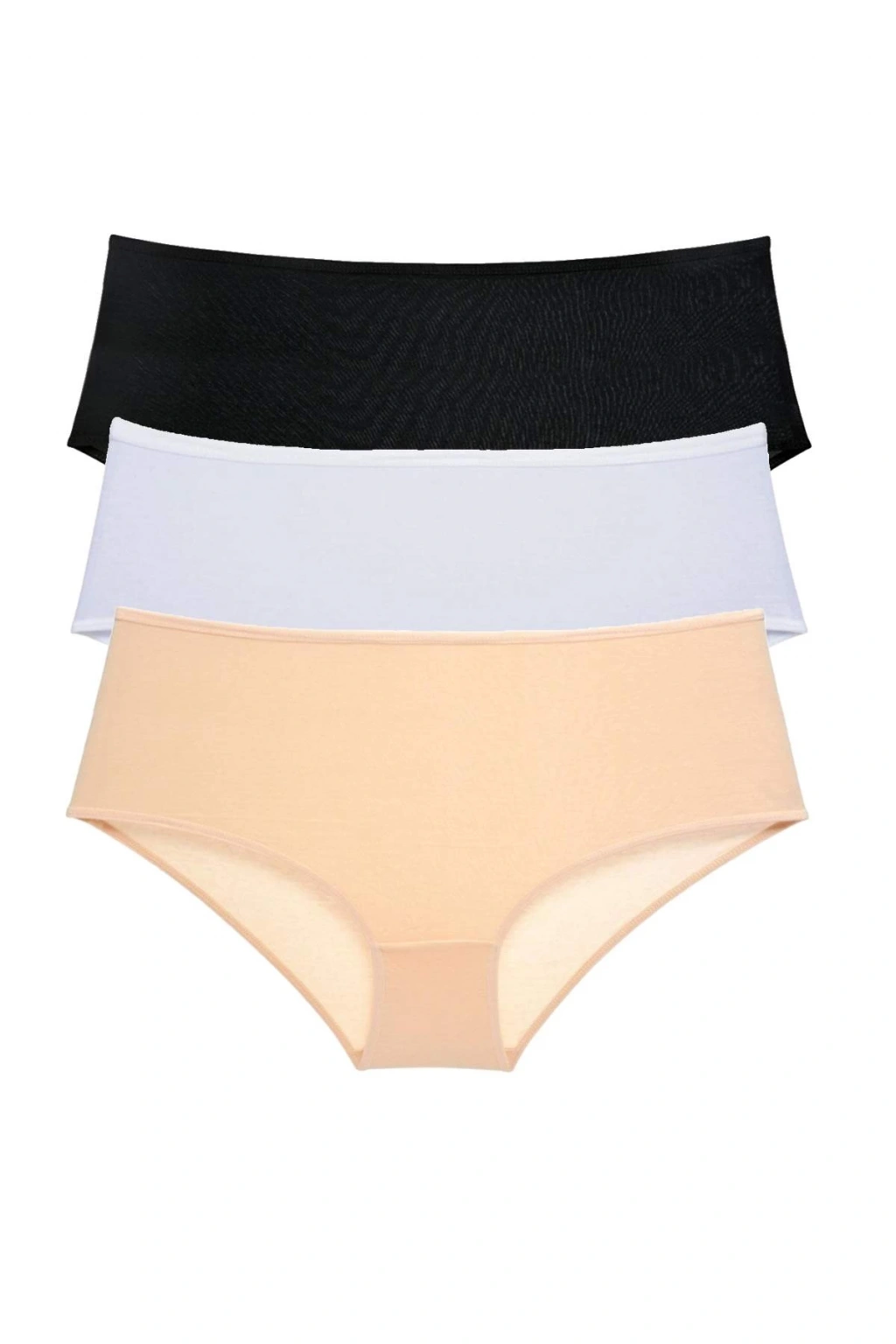 Paket içeriği: 3 Adet Kadın Yüksek Bel Bato Külot Siyah Beyaz Ten