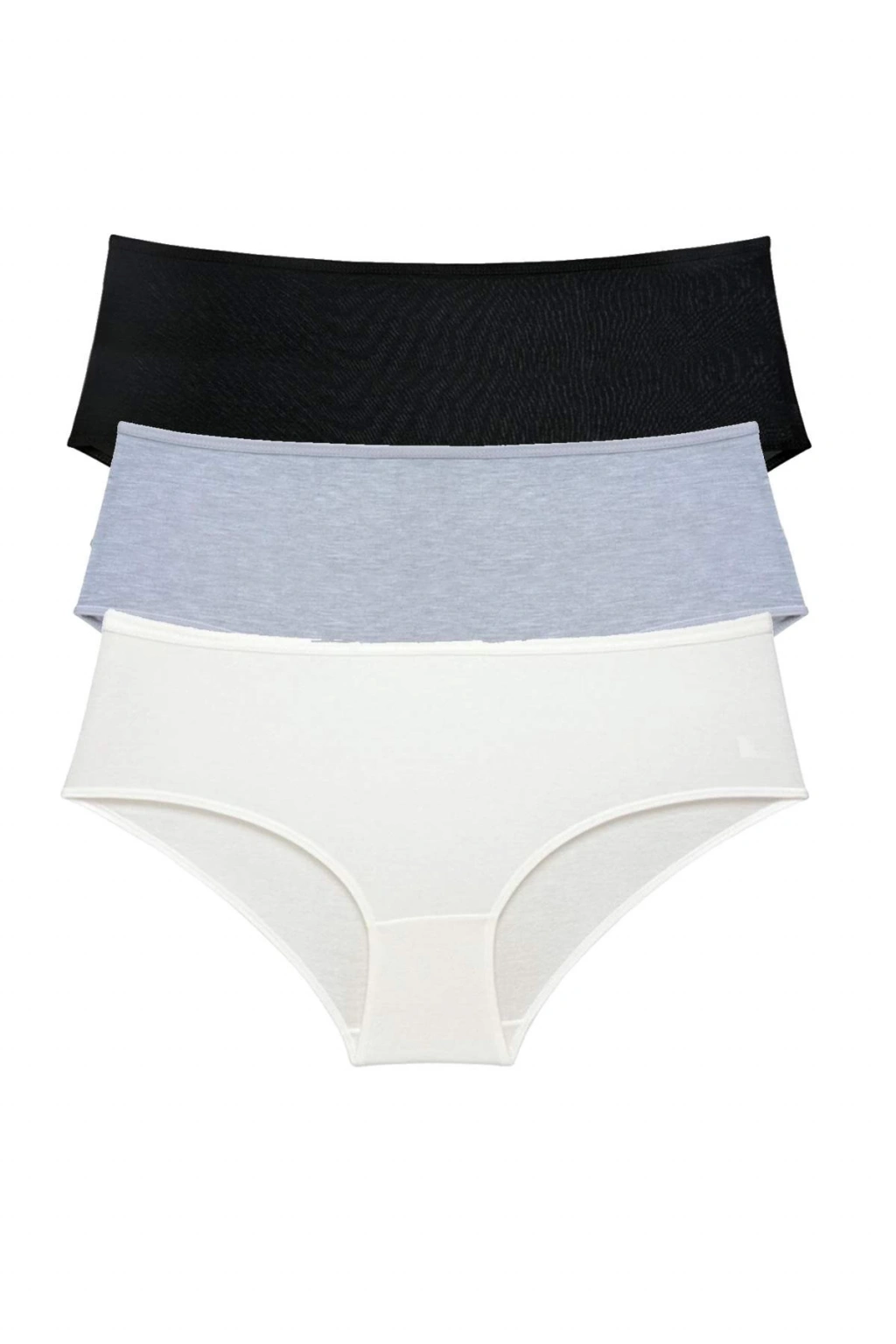 Paket içeriği: 3 Adet Kadın Yüksek Bel Bato Külot Siyah Gri Krem