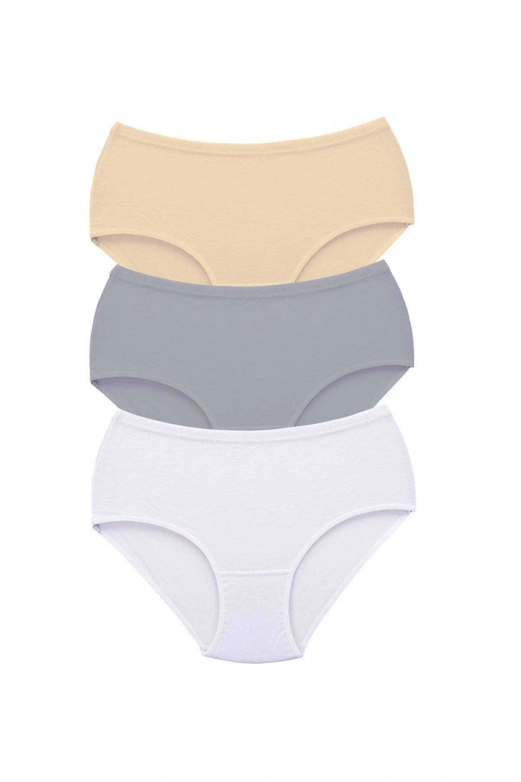 3 Adet Tutku Kadın Yüksek Bel Bato Kalın Lastik Külot Ten Gri Beyaz