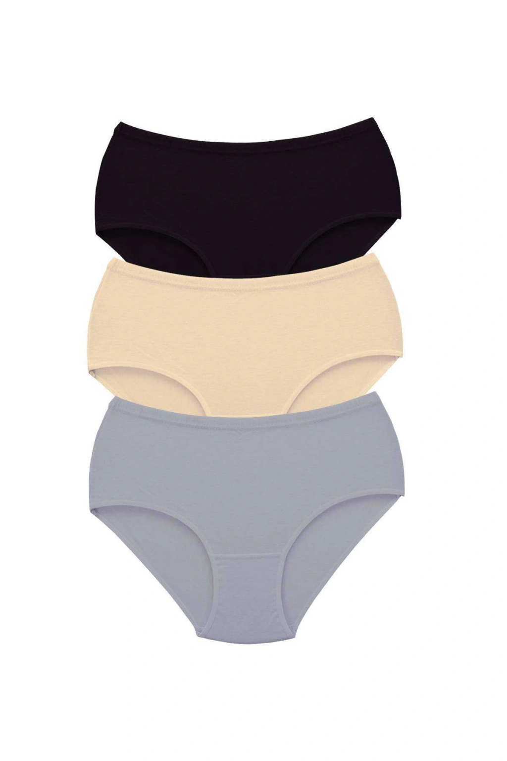 3 Adet Tutku Kadın Yüksek Bel Bato Kalın Lastik Külot Siyah Ten Gri