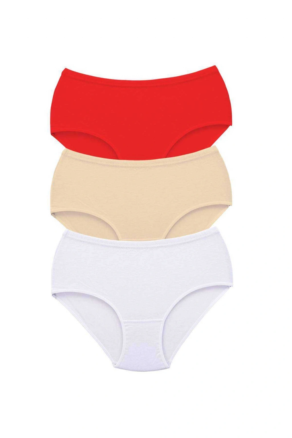 3 Adet Tutku Kadın Yüksek Bel Bato Kalın Lastik Külot Kırmızı Ten Beyaz