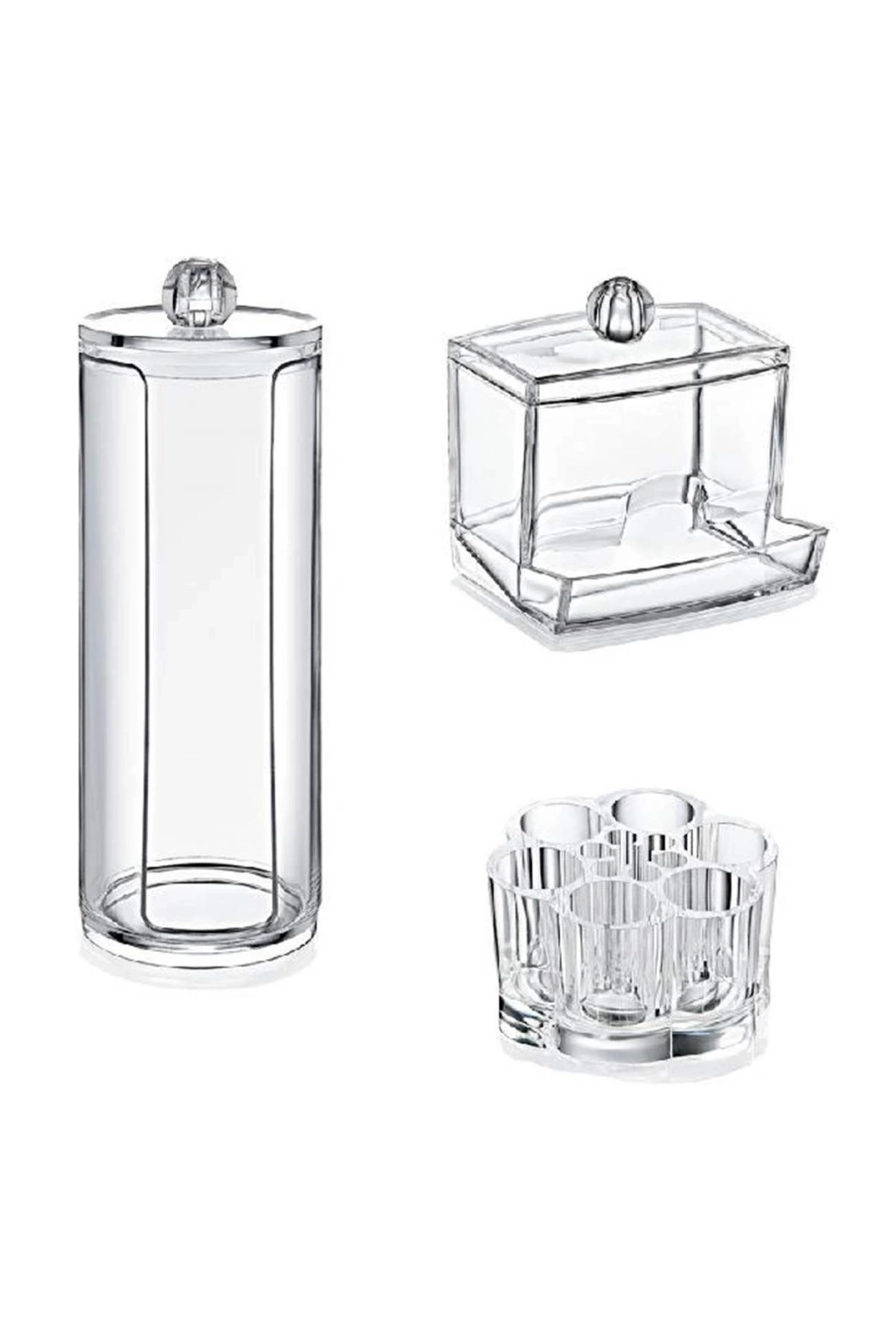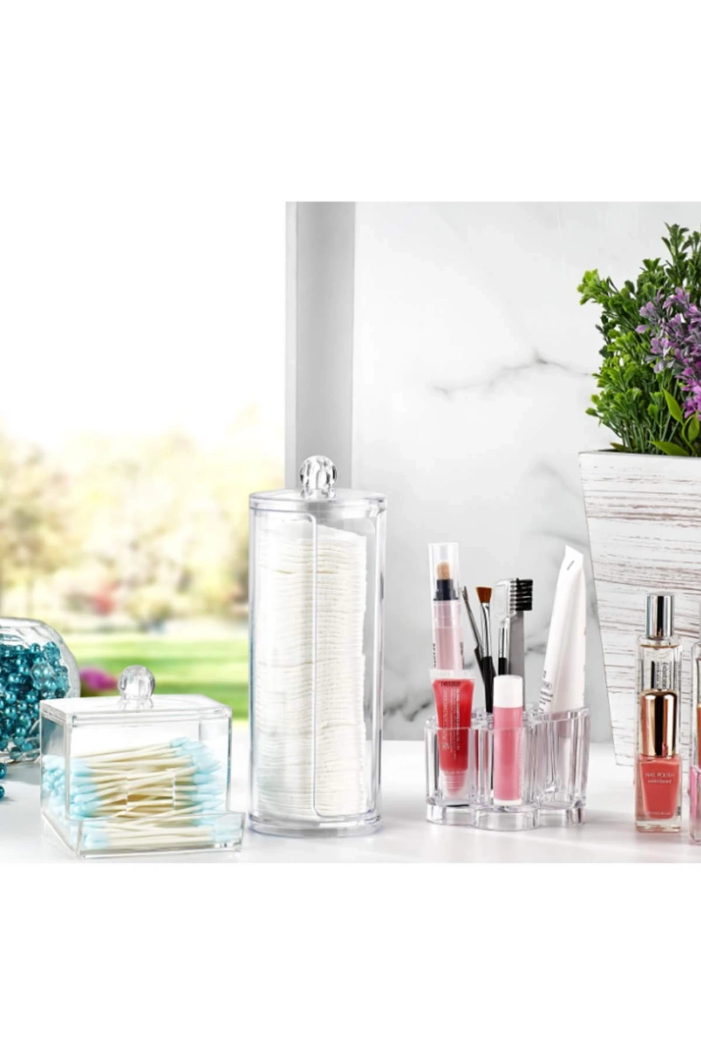 Pleksi makyaj organizeri sayesinde pamuklarınız ve kulak çubuklarınız makyajınızı temizlemek ve