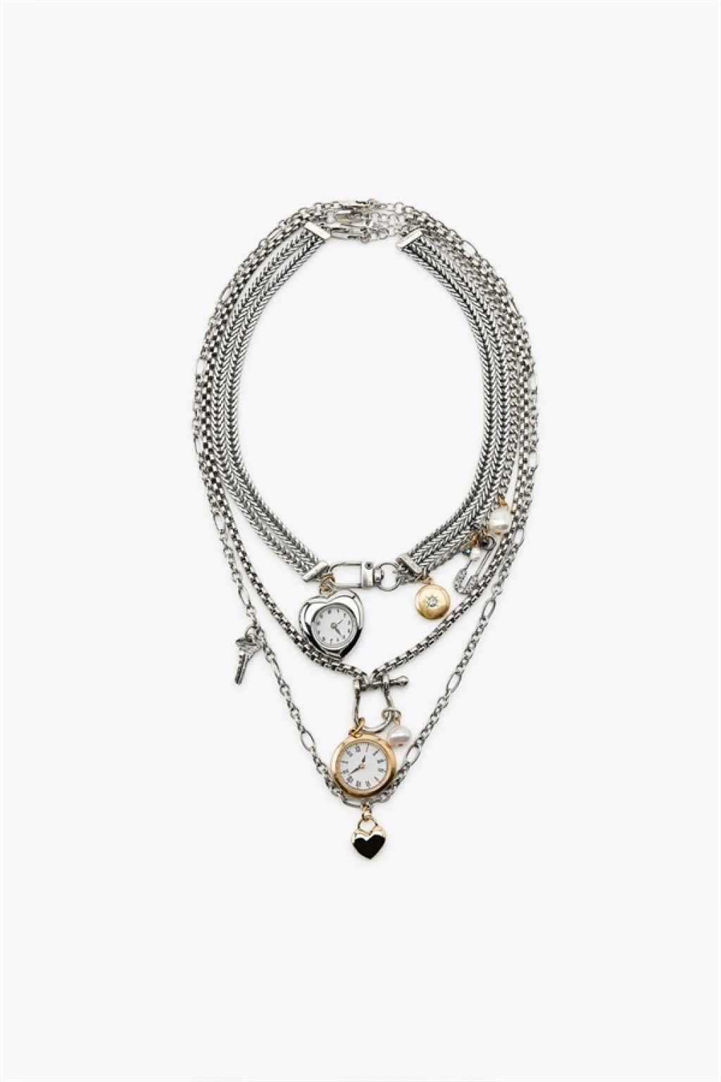 3'lü Saat Ve Charm Kolye - Gümüş