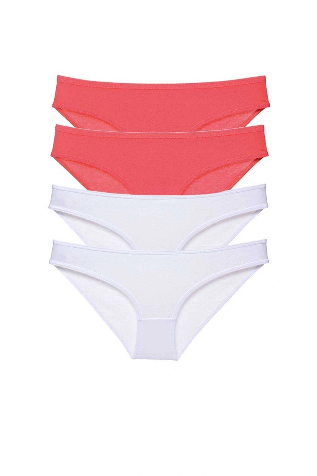 4 Adet Eko Set Likralı Kadın Slip Külot Fuşya Beyaz