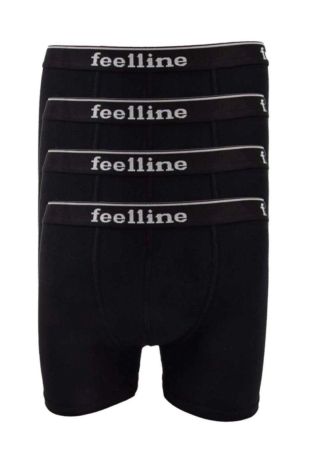 4 Adet Feelline Siyah Pamuklu Doğal Likralı Erkek Boxer