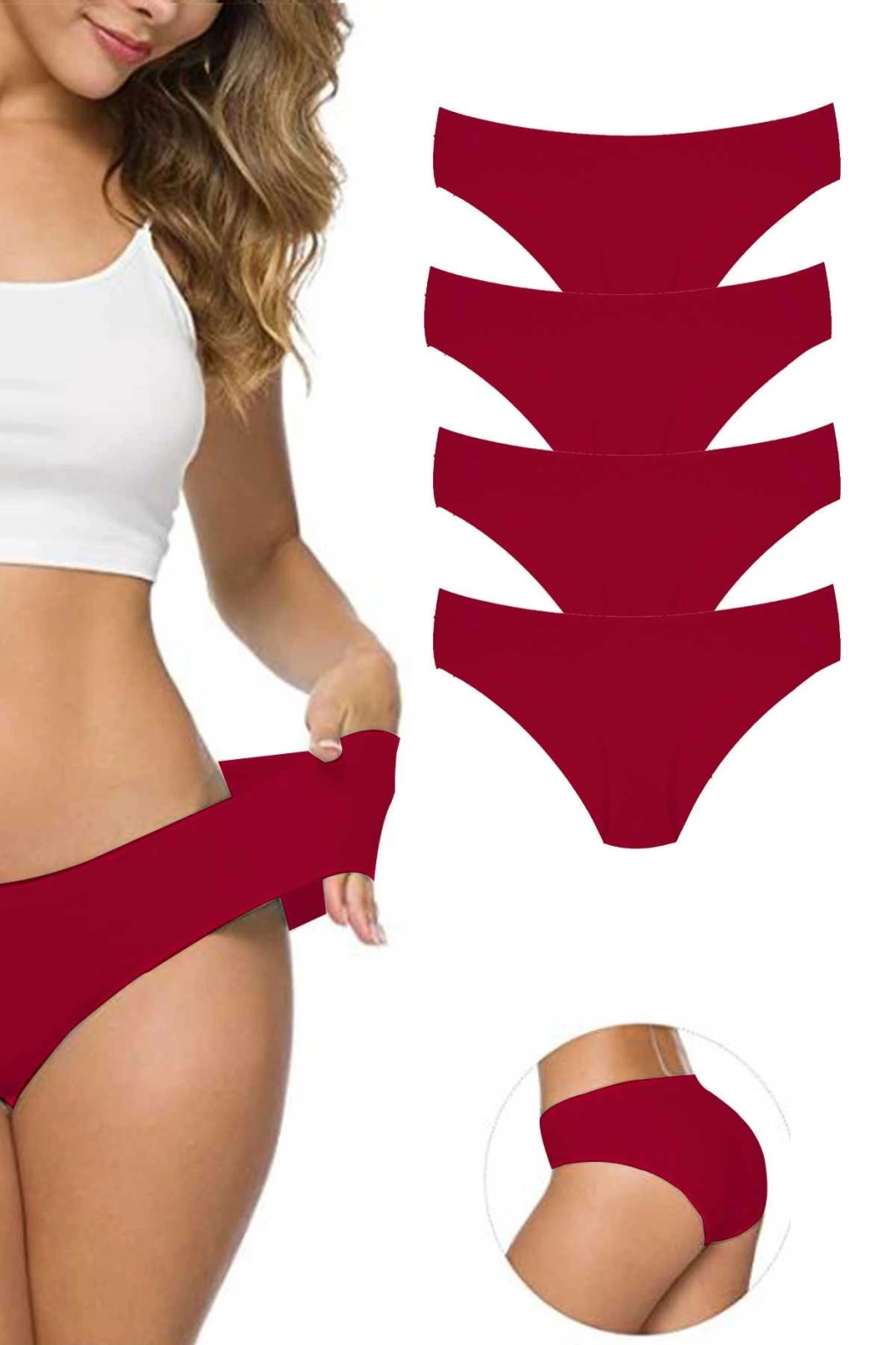 4 Adet Kadın Dikişsiz Lazer Kesim Esnek İz yapmayan Külot Bordo