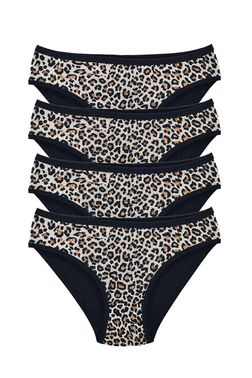 4 Adet Leopar Desenli Likralı Yumuşak Dokulu Kadın Slip Külot
