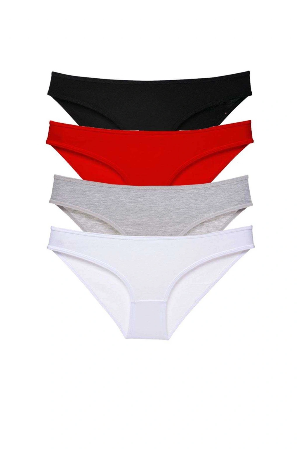 4 Adet Süper Eko Set Likralı Kadın Slip Külot Siyah Kırmızı Gri Beyaz