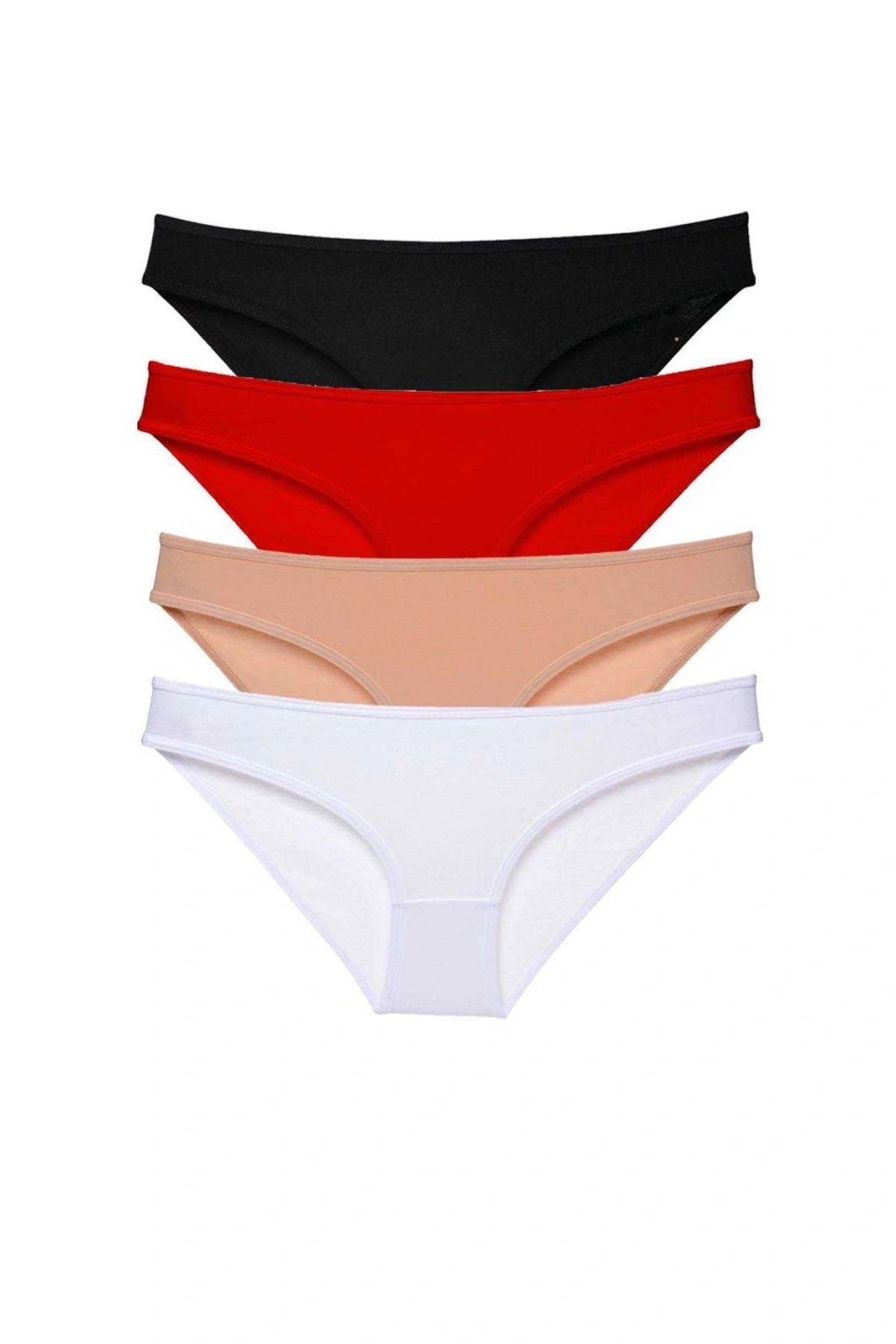 4 Adet Süper Eko Set Likralı Kadın Slip Külot Siyah Kırmızı Ten Beyaz