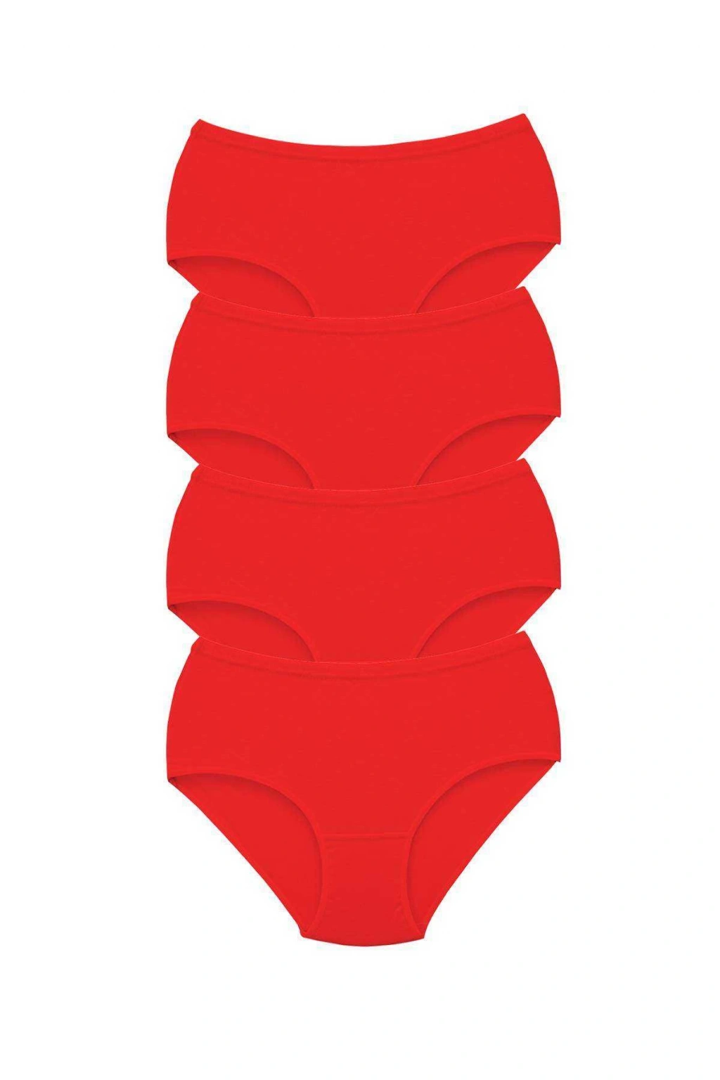 4 Adet Tutku Kadın Yüksek Bel Bato Kalın Lastik Külot Kırmızı