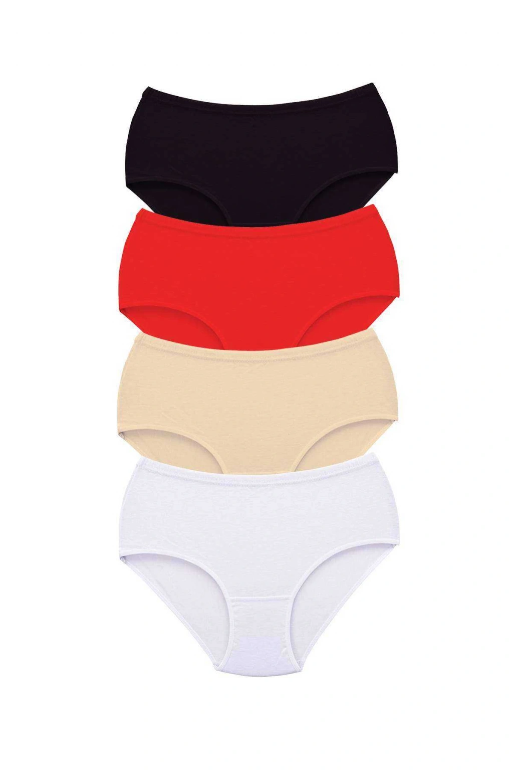 4 Adet Tutku Kadın Yüksek Bel Bato Kalın Lastik Külot Siyah Kırmızı Ten Beyaz