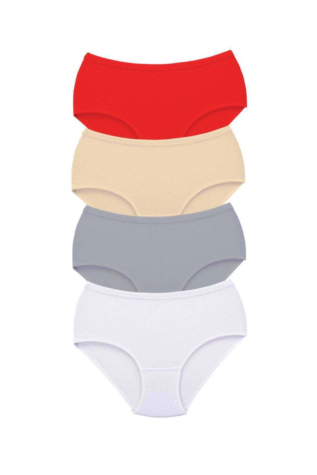 4 Adet Tutku Kadın Yüksek Bel Bato Kalın Lastik Külot Kırmızı Ten Gri Beyaz