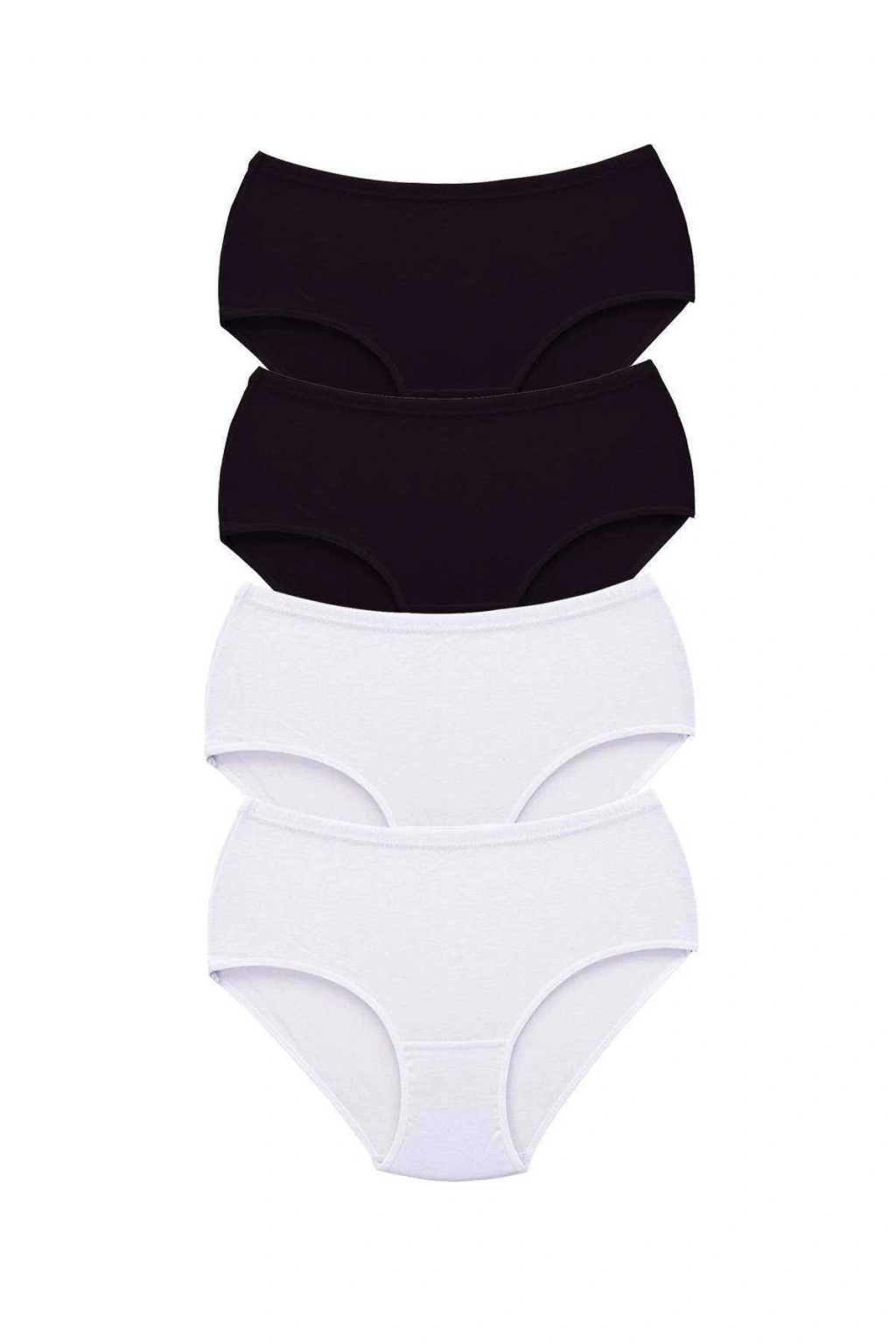 4 Adet Tutku Kadın Yüksek Bel Bato Kalın Lastik Külot Siyah Beyaz