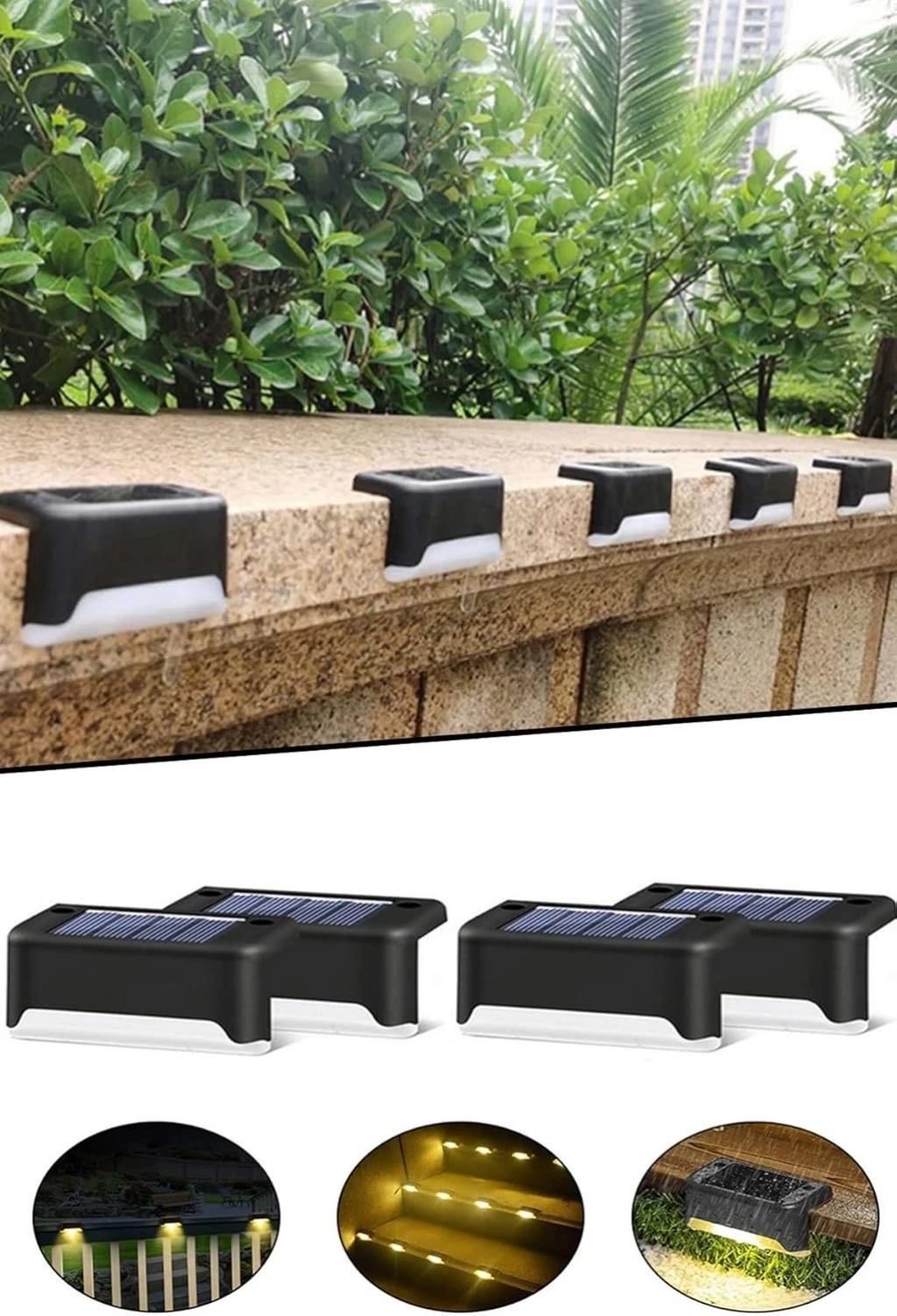 4 Adet Solar Güneş Enerjili Köşebent  Merdiven Veranda Bahçe Led Lamba