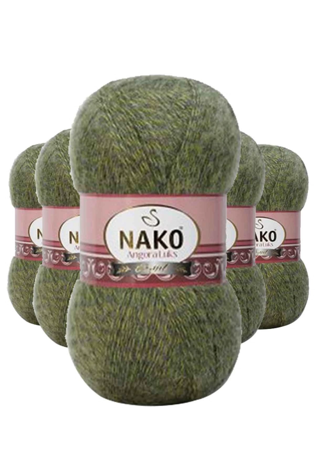 5 Adet Nako Angora Lüks El Örgü İpi Yeşil Muline 21358
