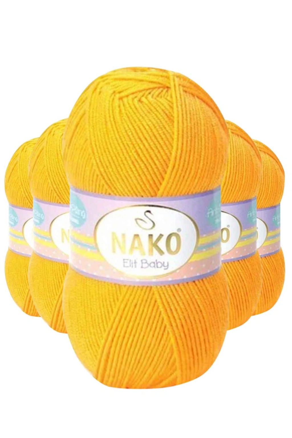 5 Adet Nako Elite Baby El Örgü İpi Tüylenmeyen Bebek Yünü Koyu Sarı 4674