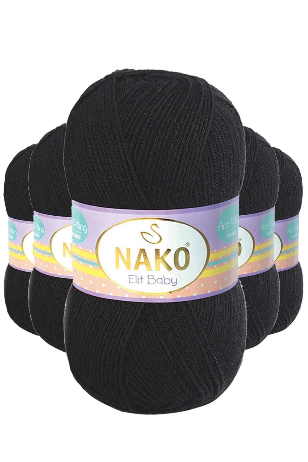 5 Adet Nako Elite Baby El Örgü İpi Tüylenmeyen Bebek Yünü Siyah 217